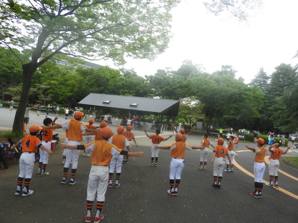 朝は、駒澤公園のラジオ体操に参加しました。