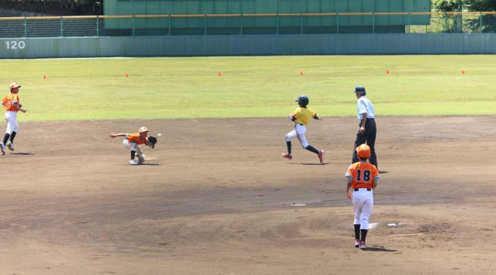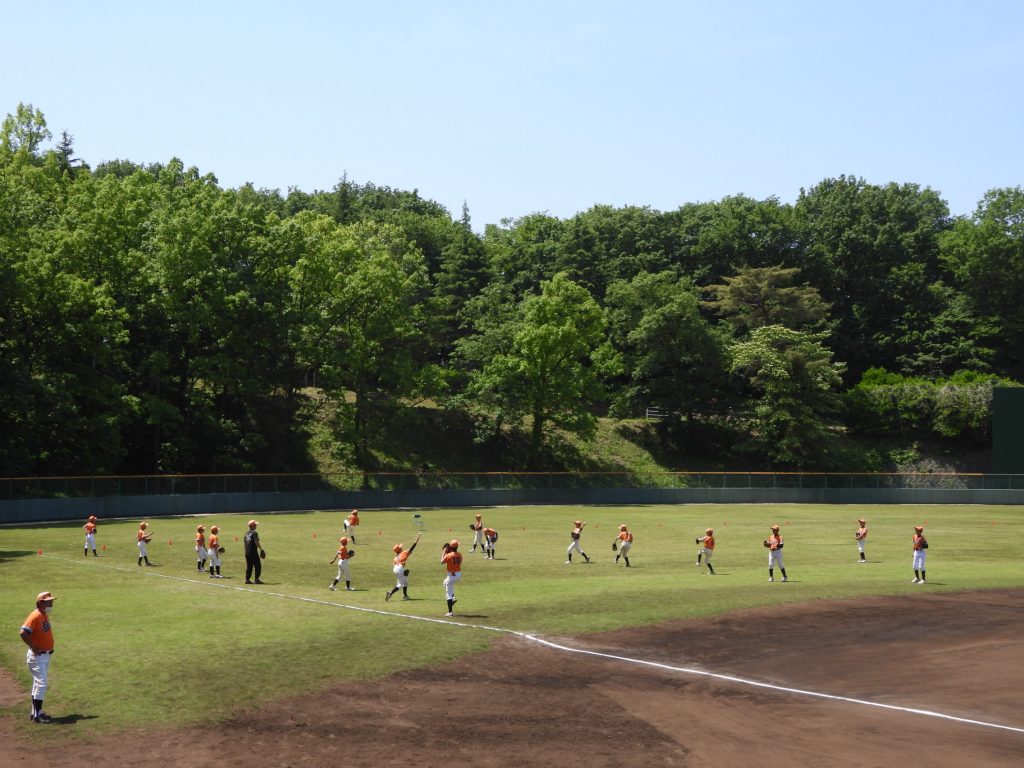 遠征して、立派な野球場で試合をしました。