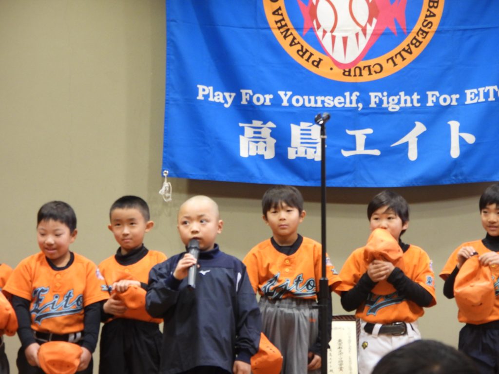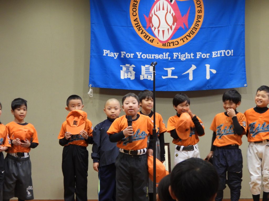 チーム応援旗のマークの意味を、2年生・1年生が、発表しました。