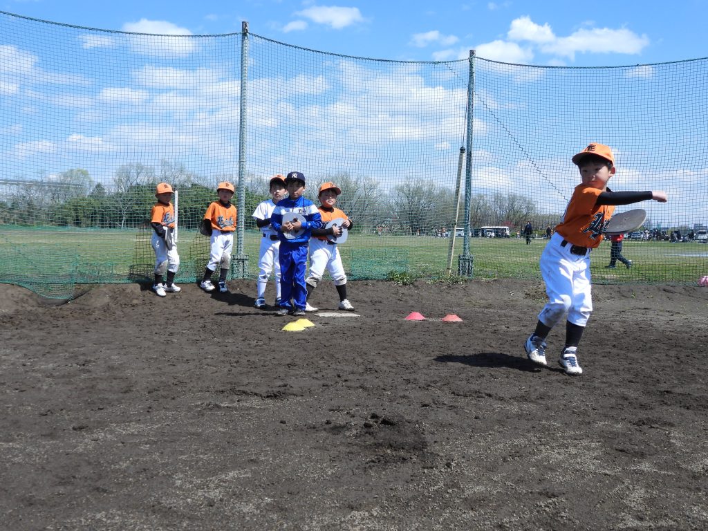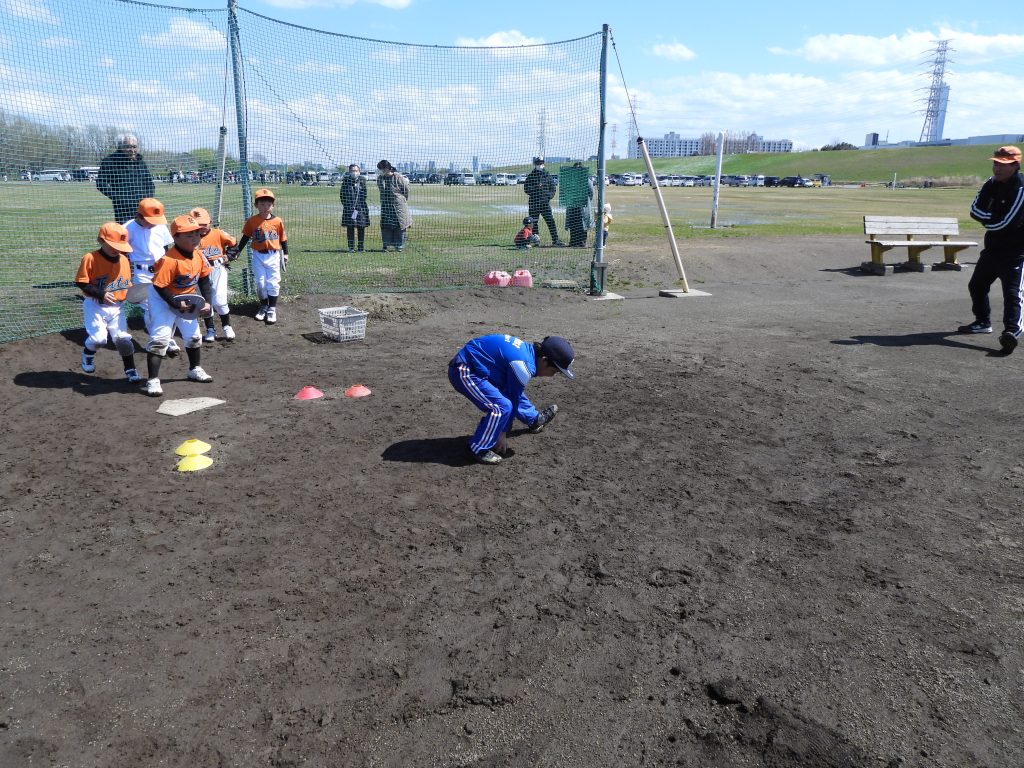 ゴロをとって ステップしてなげる れんしゅうを しました。